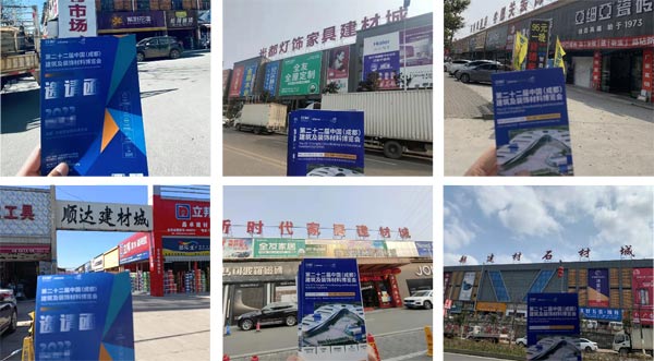 自2022年2月以來,中國成都建博會工作人員下沉市場、面對面走訪推廣宣傳,北進陜西、甘肅,南到貴州、云南,西擴西藏、青海,東至重慶,湖北,足跡遍布各省市(區)縣。四川、重慶、貴州、陜西等省市基本實現縣域全覆蓋,派發資料26萬份,更新經銷代理商有效數據10萬余條。