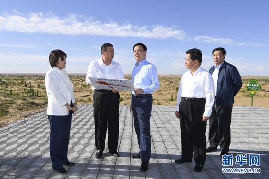8月26日至27日,中共中央政治局常委、國務(wù)院副總理韓正到內(nèi)蒙古自治區(qū)鄂爾多斯市,就庫布其沙漠防沙治沙和生態(tài)建設(shè)情況進(jìn)行調(diào)研。這是8月27日,韓正來到位于庫布其沙漠腹地的沙峰綠谷,實地查看科技手段治沙成果。 新華社記者 張領(lǐng) 攝