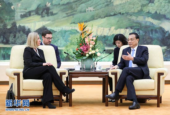 李克強會見歐盟委員會副主席、歐盟外交與安全政策高級代表莫蓋里尼