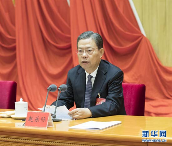 中共中央政治局常委、中央紀(jì)律檢查委員會(huì)書記趙樂際代表中央紀(jì)律檢查委員會(huì)常務(wù)委員會(huì)作題為《堅(jiān)持和完善黨和國家監(jiān)督體系為全面建成小康社會(huì)提供堅(jiān)強(qiáng)保障》的工作報(bào)告。 新華社記者 王曄 攝