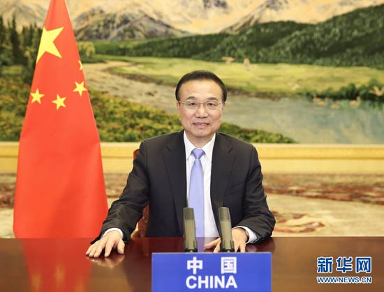 12月14日,國(guó)務(wù)院總理李克強(qiáng)在《經(jīng)濟(jì)合作與發(fā)展組織公約》簽署60周年紀(jì)念活動(dòng)上發(fā)表視頻致辭。 新華社記者 龐興雷 攝