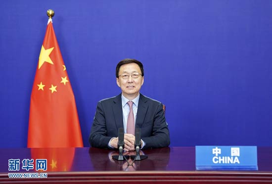 1月25日,中共中央政治局常委、國務院副總理韓正在北京以視頻方式出席首屆氣候適應峰會并發表致辭。新華社記者 殷博古 攝