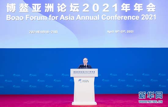 4月20日,國家副主席王岐山在海南博鰲出席博鰲亞洲論壇2021年年會開幕式,集體會見論壇理事和戰略合作伙伴,并同中外企業家代表座談。新華社記者 李濤 攝