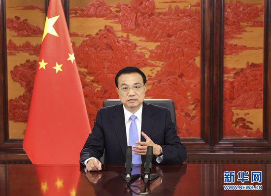 5月30日,國務院總理李克強在北京以視頻形式出席第二屆全球綠色目標伙伴2030峰會并致辭。 新華社記者 龐興雷 攝