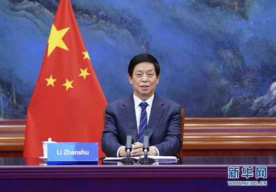 6月22日,全國(guó)人大常委會(huì)委員長(zhǎng)栗戰(zhàn)書在北京人民大會(huì)堂以視頻方式同塞爾維亞國(guó)民議會(huì)議長(zhǎng)達(dá)契奇舉行會(huì)談。新華社記者 張領(lǐng) 攝