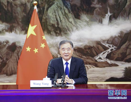 6月29日,中共中央政治局常委、全國政協主席汪洋在北京以視頻方式會見老撾人民革命黨中央政治局委員、建國陣線中央主席辛拉馮。