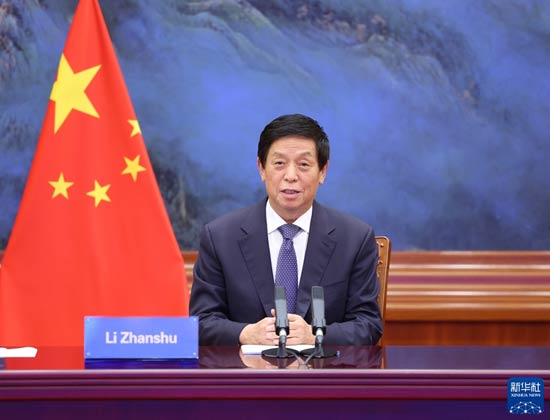 9月15日,全國人大常委會(huì)委員長栗戰(zhàn)書在北京人民大會(huì)堂以視頻方式同巴林國民議會(huì)議長兼眾議長扎伊納勒舉行會(huì)談。
