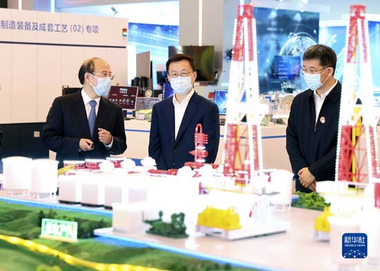 10月26日,中共中央政治局常委、國務院副總理韓正在北京展覽館參觀國家“十三五”科技創(chuàng)新成就展。新華社記者 劉衛(wèi)兵 攝