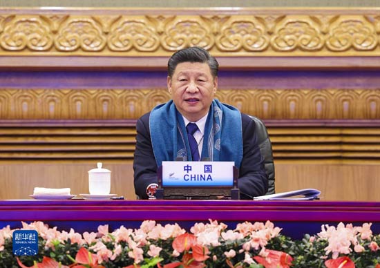 11月12日晚,國家主席習近平在北京以視頻方式出席亞太經合組織第二十八次領導人非正式會議并發表重要講話。新華社記者 黃敬文 攝