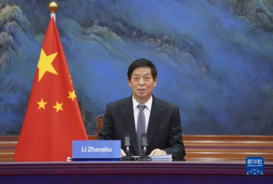 12月7日,全國人大常委會(huì)委員長栗戰(zhàn)書在北京人民大會(huì)堂以視頻方式同奧地利國民議會(huì)議長索博特卡舉行會(huì)談。新華社記者 張領(lǐng) 攝