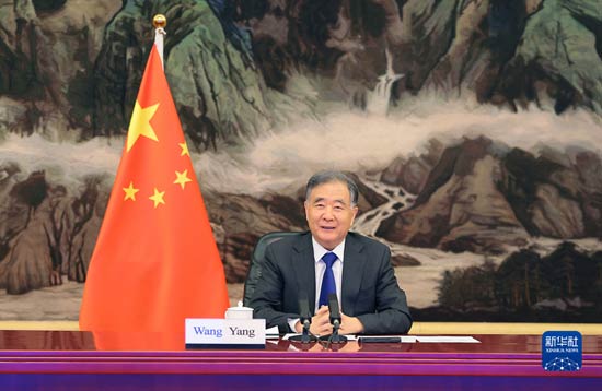 12月21日,全國政協主席汪洋在北京以視頻方式會見牙買加參議長塔瓦雷斯-芬森。新華社記者 姚大偉 攝