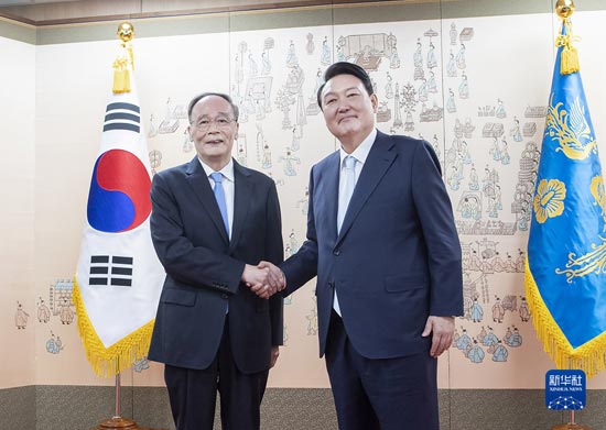 5月10日,應韓國政府邀請,習近平主席特別代表、國家副主席王岐山在首爾出席新任總統尹錫悅就職儀式并同其舉行會見。