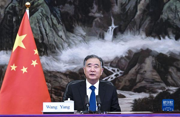 5月31日,全國政協(xié)主席汪洋在北京以視頻方式會見阿爾及利亞民族院議長古吉勒。