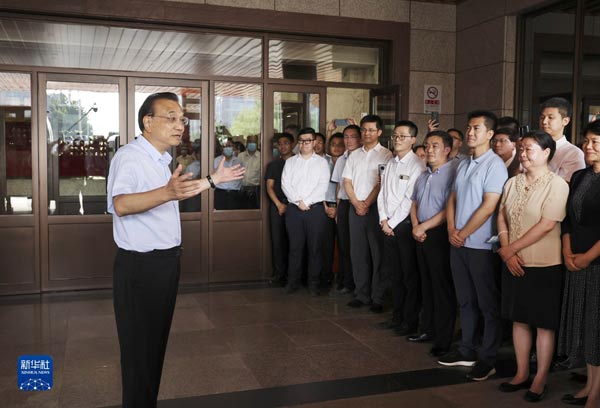 6月27日,中共中央政治局常委、國務(wù)院總理李克強到民政部、人力資源社會保障部考察,并主持召開座談會。這是李克強在民政部考察時與工作人員交談。