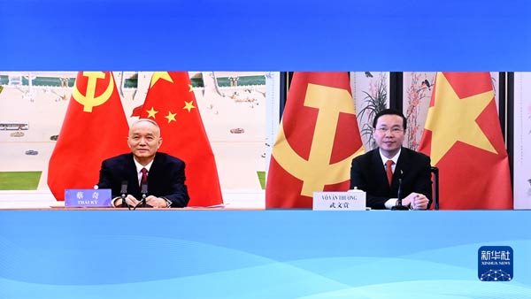 蔡奇同越共中央政治局委員、中央書記處常務書記武文賞視頻會晤