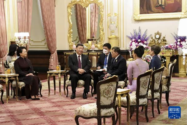 當地時間11月18日晚,國家主席習近平和夫人彭麗媛在曼谷大王宮會見泰國國王哇集拉隆功和王后素提達。新華社發