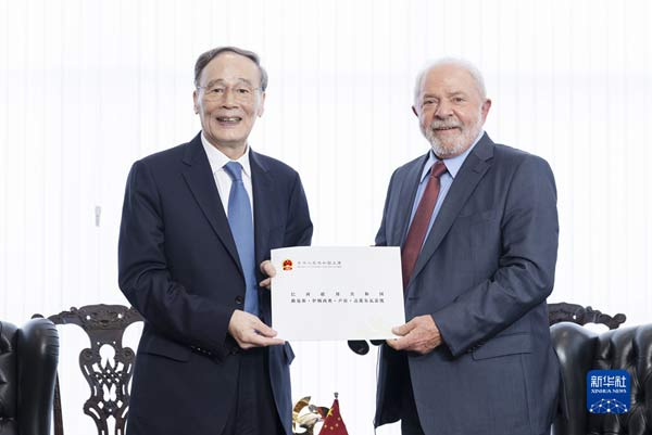 2022年12月31日至2023年1月2日,應巴西政府邀請,習近平主席特別代表、國家副主席王岐山在巴西首都巴西利亞出席巴西新任總統盧拉就職儀式并同其舉行會見。這是1月2日,會見盧拉時,王岐山向盧拉轉交習近平主席的親署函。