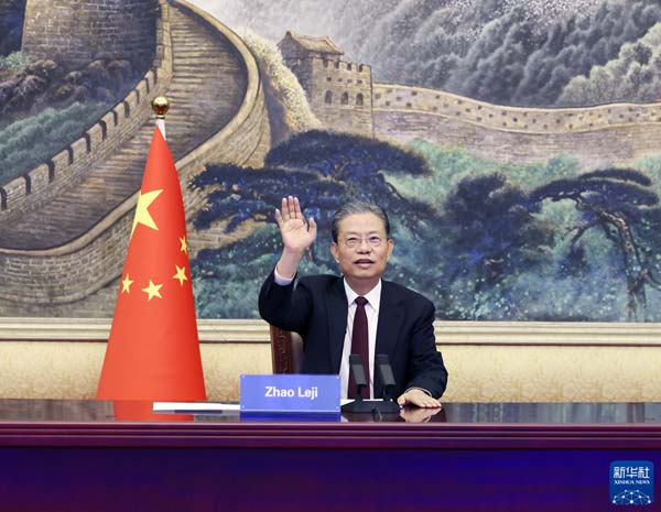 3月27日,中共中央政治局常委、全國人大常委會委員長趙樂際在北京人民大會堂以視頻方式同越共中央政治局委員、越南國會主席王庭惠舉行會談。