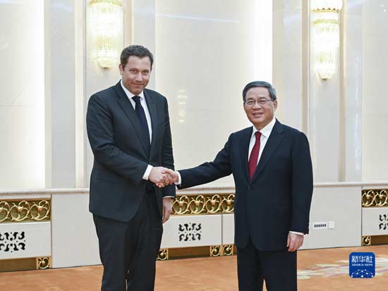 6月5日下午,中共中央政治局常委、國務院總理李強在北京人民大會堂會見由德國社會民主黨聯合主席克林貝爾率領的代表團。 新華社記者 張領 攝
