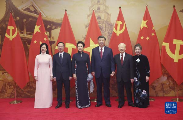 當地時間12月12日下午,剛剛抵達河內的中共中央總書記、國家主席習近平在越共中央駐地同越共中央總書記阮富仲舉行會談。