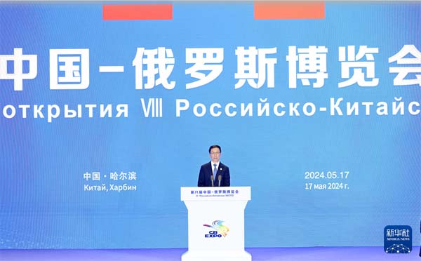5月17日,國家副主席韓正在哈爾濱同俄羅斯總統普京共同出席第八屆中俄博覽會開幕式,宣讀習近平主席賀信并致辭。