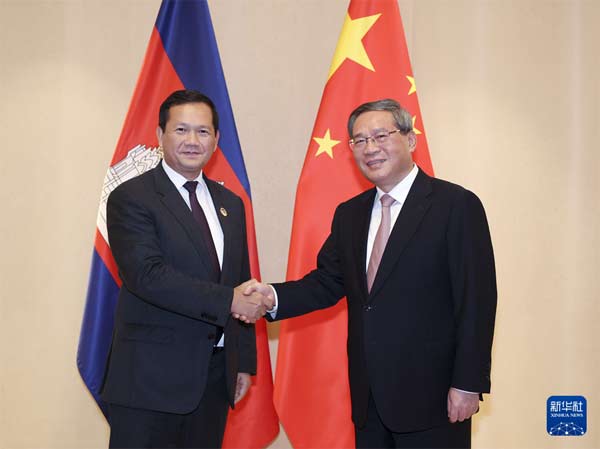 當地時間10月10日,國務院總理李強在萬象出席東亞合作領導人系列會議期間會見柬埔寨首相洪瑪奈。