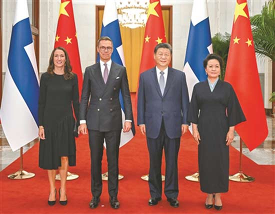 習近平指出,芬蘭是最早一批同新中國建交的西方國家之一,也是第一個同中國簽訂政府間貿易協定的西方國家。建交以來,中芬始終友好相處、互尊互信,樹立了國與國之間超越歷史、文化、制度差異,平等交往的典范。當前,世界百年變局加速演進,人類社會面臨的風險挑戰增多。在此背景下,中芬面向未來的新型合作伙伴關系更顯獨特價值,值得倍加珍惜和發揚光大。中方愿同芬方一道,加強戰略合作,弘揚友好傳統,將中芬面向未來的新型合作伙伴關系進一步推向前進,更好造福兩國和兩國人民,為世界和平和發展作出新貢獻。