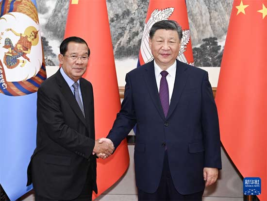 習近平同柬埔寨人民黨主席、參議院主席洪森會談