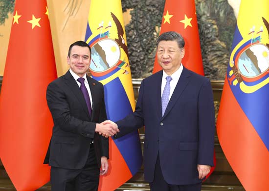 6月27日上午,國家主席習近平在北京人民大會堂會見來華出席夏季達沃斯論壇的厄瓜多爾總統諾沃亞。