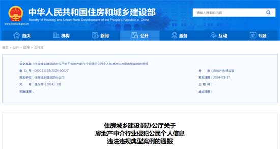 住房城鄉建設部通報房地產中介行業侵犯公民個人信息違法違規典型案例